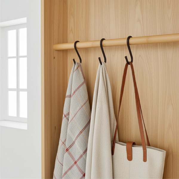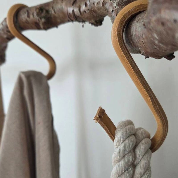 Deze stijlvolle S-Haken zijn een aanwinst voor je garderobe of keuken. De stalen S-haken zijn homemade gestofferrd met leer in een verschillende kleuren; Naturel, Bruin, Zwart, rood, lime