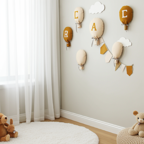 Deze stoffen ballonnen vormen een prachtige en milieuvriendelijke decoratie voor de kinderkamer. Gemaakt van gerecycled polyester en voorzien van het Oeko-Tex label, garanderen ze dat er geen schadelijke stoffen in het materiaal aanwezig zijn. De ballon is op zichzelf al een charmante toevoeging, maar biedt ook de mogelijkheid tot personalisatie.